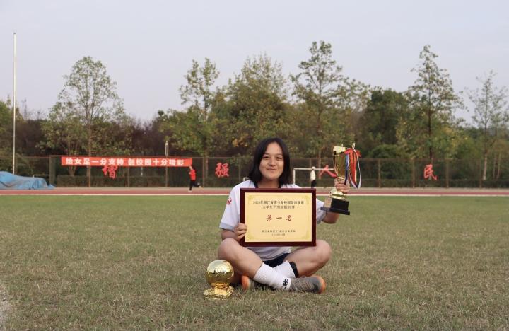 最难忘的是2020年10月下旬浙江省大学生女子足球联赛。这是我第一次参加省赛,我是个替补,因为疫情的关系,本来是4月份的比赛延迟到10月份、地点在我们学校。