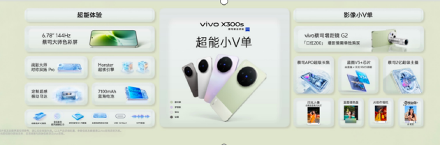 vivo X300 Ultra以‘专业V单’之名,在vivo X200 Ultra的基础上再进一步:完全依照专业相机逻辑打造,蔡司大师镜头群加持,配合vivo色彩科学,让每一帧照片与视频都经得起专业审视,真正成为专业创作者手中的影像利器。而定位‘超能小V单’的vivo X300s,让用户在影像与性能之间不做选择,真正将“小V单”的影像实力与电竞级的超酷体验一并装入口袋,带来综合体验极佳的超能旗舰。