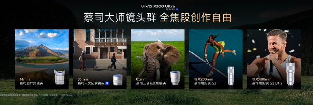 vivo X300 Ultra通过完整的、可扩展的、真正意义上的——蔡司大师镜头群,全黄金焦段、全大底、全蔡司、全高画质、全超级防抖,实现创作自由。14mm蔡司超广角镜头搭载蓝图×索尼LYTIA 818传感器,1/1.28英寸超大底,拍摄风光和人像实力不用多说;但比风光和人像更加依赖超广角的是视频,大底加上CIPA 6.0专业级防抖,跑着拍、转着拍,画面都很稳。35mm蔡司人文纪实镜头II搭载行业首发蓝图×索尼LYTIA 901传感器,1/1.12英寸超大底,像素升级至最高2亿直出,轻松实现35mm黄金焦段高画质;大底之外,光学镀膜也全面升级,采用1G+6P行业前沿的镀膜技术,反射率有效降低20%以上,加上CIPA 6.5专业级防抖,配合全新升级的人文模式,抬手就能稳出故事大片。作为第五代蔡司2亿灭霸长焦——85mm蔡司云台级长焦镜头,搭载全球首发蓝图×三星HP0传感器,1/1。4英寸超大底,在色彩、对焦、HDR和功耗控制上全面升级,自研的60fps高帧率系统通路、蓝图高刷追焦引擎、NICE算法引擎,每秒60次自动对焦是过去的两倍,焦点框如影随形,死死咬住目标;同时首发3°OIS光学防抖,实现专业相机才有的CIPA7.0专业级防抖,让用户在长焦运动抓拍场景下不仅追得很准,还能拍得更稳。